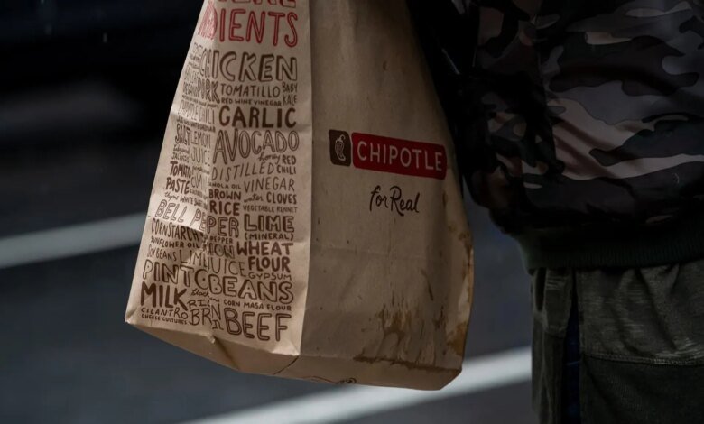 A customer carries a Chipotle bag in San Francisco, California, US, on Friday, Jan. 31, 2025.